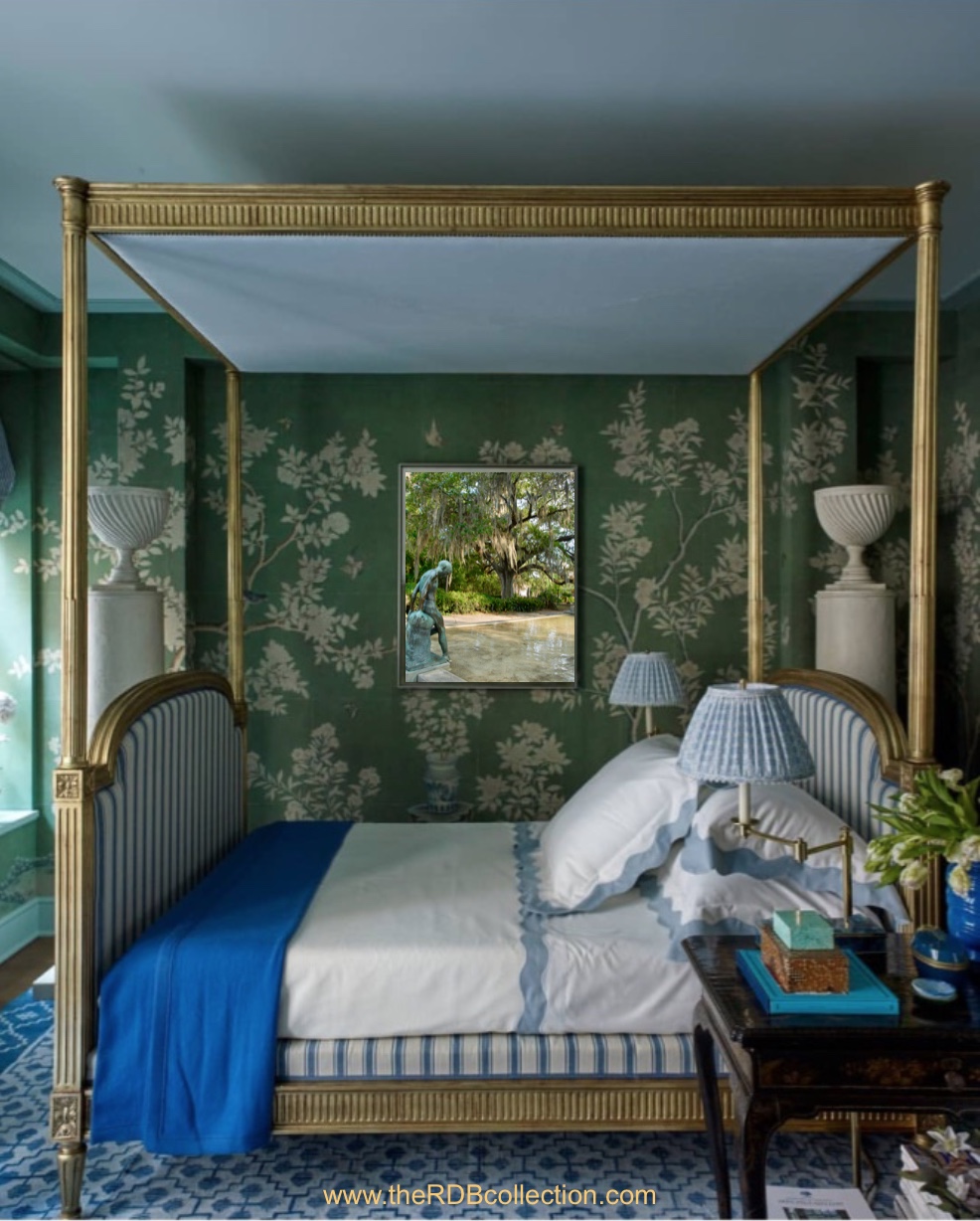 RDB PHOTOGRAPHY OAK AND BOY STATUE AUDUBON PARK INTERIOR BEDROOM THERDBCOLLECTION.COM PHOTO BY RENEE DENT BLANKENSHIP